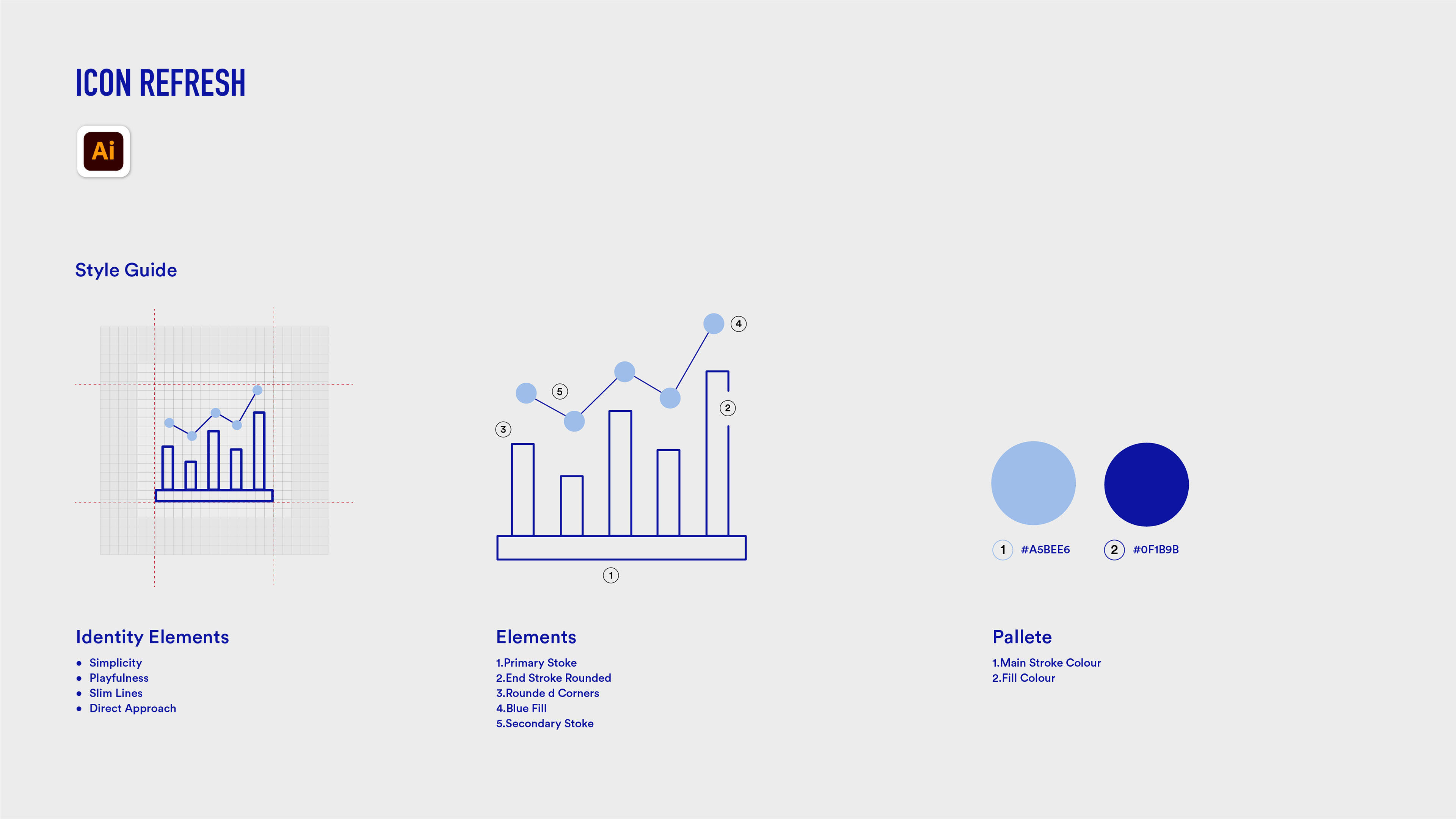 A thorough analysis of the existing branding elements was conducted to understand the desired direction. The icons were redesigned with a modern aesthetic, incorporating clean lines, simplified forms, and updated color palette. Consistency across the entire set of icons was maintained.